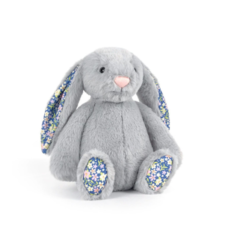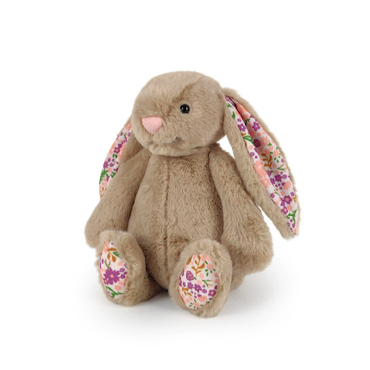 У этого кролика милый общий дизайн. Он поставляется в четырех цветах и выглядит мягким и пушистым в целом. Интерьер ушей кролика и подошвы его ног украшены тканью с небольшими цветными цветочными узорами, что делает маленького кролика еще более привлекательным. У него маленький черный глаз и маленький розовый нос, и все его лицо выглядит очень оживленно. Общий дизайн не только милый, но и полный теплого чувства. Его размер составляет около 31 см. Эта фаршированная игрушка кролика может быть использована не только в качестве украшения, но и в качестве фестивального подарка для друзей, что делает ее отличным выбором.