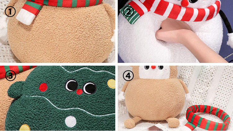 Все эти четыре разных игрушка очень милые: есть Санта-Клаус с бородой, рождественская елка, а украшения на этой рождественской елке показаны через круглые швы разных цветов. Есть также звездное украшение в верхней части дерева. Кроме того, есть снеговик и олень в шарфах и шляпах. Эти четыре разных стиля плюшевых рождественских украшений - все сшиты руками и ногами, чтобы сделать их более антропоморфными и оживленными, и их формы пухлые и очень милые. Подходит для использования в качестве подушки для броска. Держать его будет очень удобно.