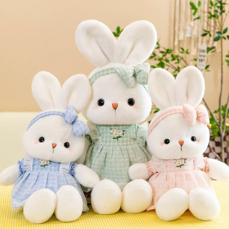 Фаршированный пасхальный кролик обернут высококачественной короткой плюшевой тканью и наполнена хлопком PP внутри. Юбки, которые они носят, еще более потрясающе красивы. Его симпатичная внешность завоевала пользу многих клиентов. Эти высококачественные продукты производятся Zebra Party® Plush Toy Factory и прошли сертификацию безопасности.